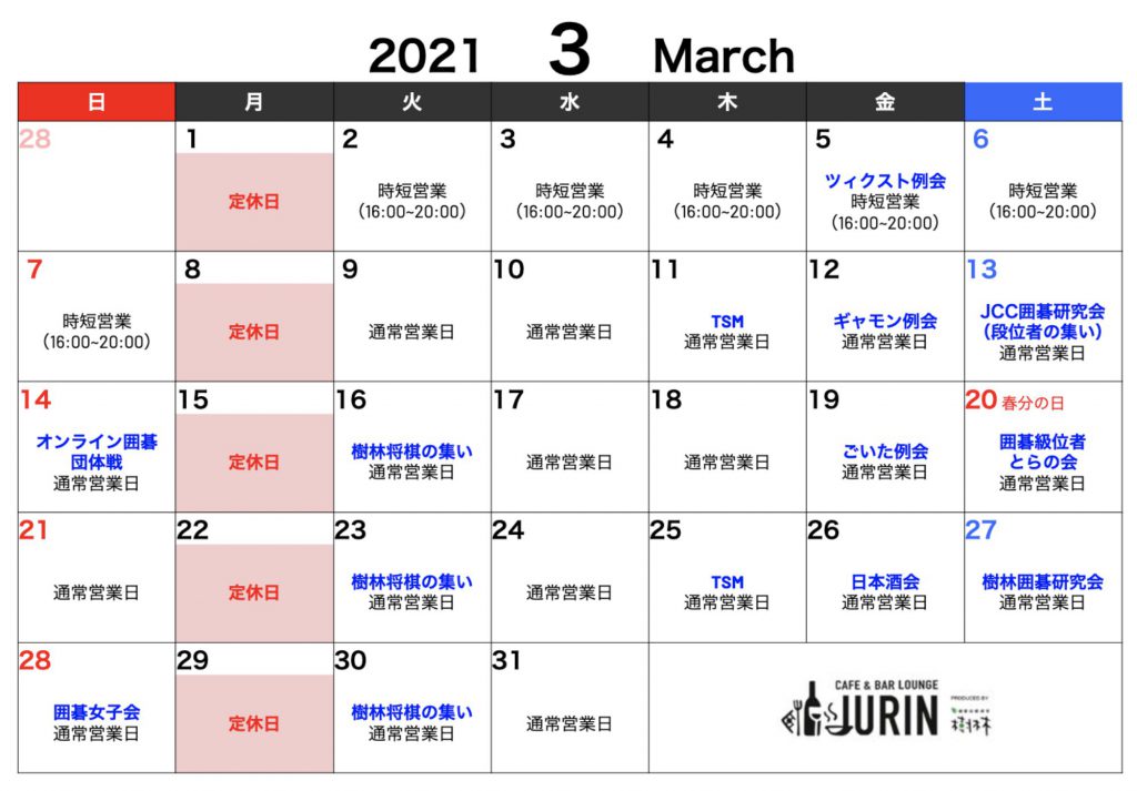 2021年1月8日より3月7日までの期間は20時までの時短営業となっております。