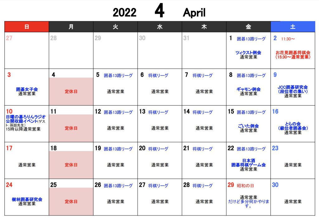 青字はイベントを開催しておりますが、通常営業もしておりますのでお気軽にご来店ください。 ご予約も可能です。 貸切(赤)となっている部分は通常のご利用ができません。ご了承くださいませ。(貸切時間帯以外は通常通りご利用いただけます。)