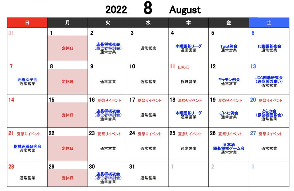 1日、8日、15日、22日、29日はお休みです。お盆も休まず営業しております。